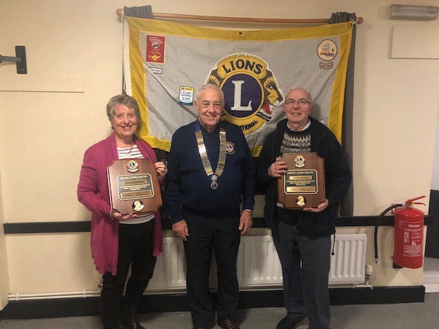 Lions Marion and Peter awarded Melvin Jones Fellowships for all their hard work by President David at last nights business meeting (fb)