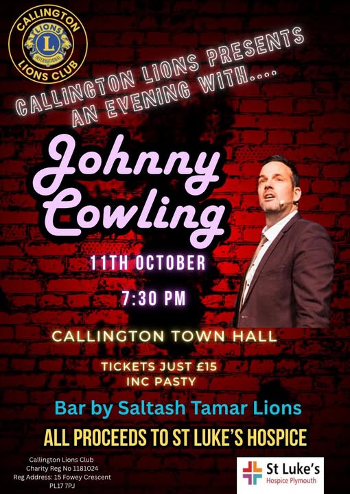 Due to illness I have some tickets available for tomorrow evenings Johnny Cowling event. If anyone would like tickets please inbox us directly. Tickets are NOT available from anyone else or anywhere else. Payment is £15 a ticket paid directly into the lions bank account or cash delivered to us personally today. Pasty included. (fb)