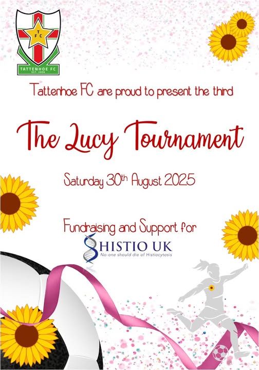 IT DOESN'T STOP THERE!! 🌻TATTENHOE FC ARE PLEASED TO ANNOUNCE THE 3RD RUNNING OF THE LUCY TOURNAMENT.🌻 SATURDAY 30TH AUGUST 2025. This is a GIRLS only tournament held in honour of the late Lucy Dawson who was a big member of our Tattenhoe Family and raises funds for Histio UK This year's event will include age groups (This is a pre-season tournament for 2025/26 Season, so Age Groups are from September 2025): Under 9's (7 a-side) Under 11's (7 a-side) Under 12's (9 a-side) Under 13's (9 a-side) - FULL (Join Reserve List) Under 14's (11 a-side) - FULL (Join Reserve List) Under 15's (11 a-side) Please visit our Register Interest page for more details - https://tattenhoefc.com/events/lucy-tournament-2025 (fb)