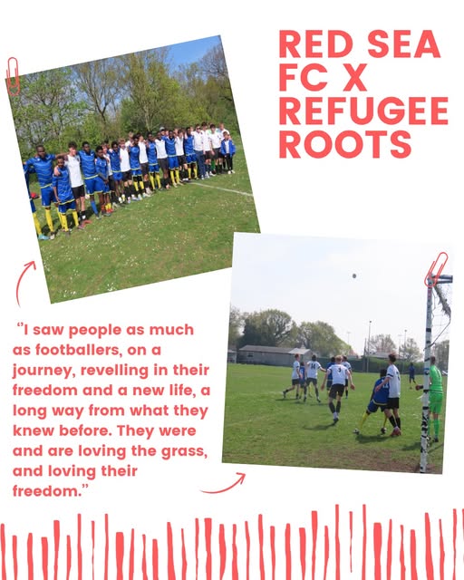 Red Sea FC x Refugee Roots We’re proud to support Red Sea FC ! Their journey goes beyond football. As Dr. Chris Towers so beautifully put it: “I saw people as much as footballers, on a journey, revelling in their freedom and a new life… They were and are loving the grass, and loving their freedom.” This is what it looks like when sport builds community, and connection. (fb)