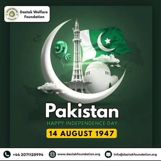 This 14th August, Dastak Welfare Foundation proudly joins the nation in celebrating Pakistan’s Independence Day. We honor the sacrifices that brought us freedom and remain committed to building a brighter, stronger, and more compassionate Pakistan through education, welfare, and community support. Let’s cherish our independence and work together for a prosperous future. Happy Independence Day! (fb)