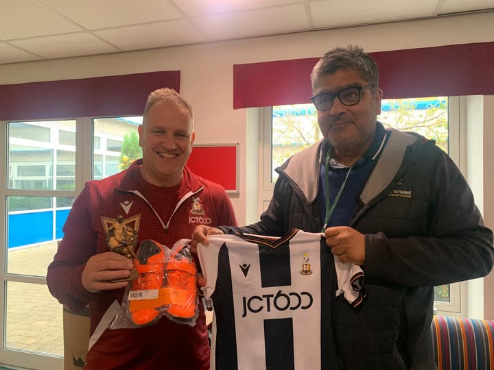 It was Action For Sports pleasure to donate a significant amount of sports clothing and sporting footwear to Beckfoot Heaton Primary School so that struggling children there can participate in sports. Pictured with me is Shiv who is a governor at the school and a great role model in the community , recently winning a lifetime Sports award for his contribution to sport in Bradford. (fb)