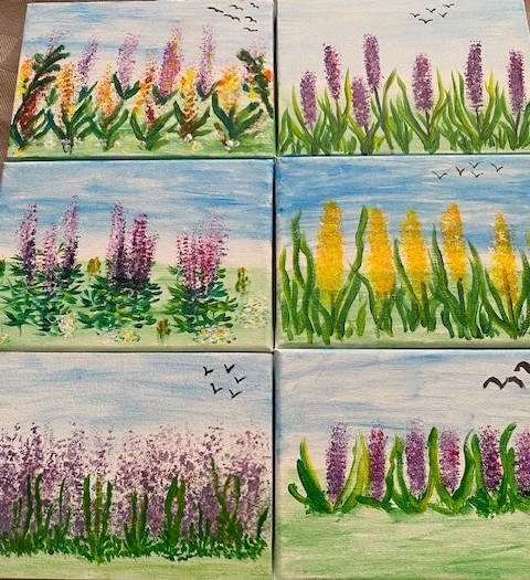 South Park WI, May craft afternoon was spent producing a small painting using a Silicon Pastry Brush, Acrylic Paints & a small paint brush, and what a lovey variety of works of art the ladies produced. Amanda Bird (fb)
