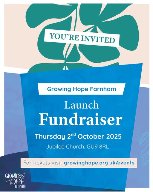 You're invited to our Launch Fundraiser for Growing Hope Farnham, in partnership with Jubilee Church! Join us for a special evening with music, drinks, and canapés as we cheer on the team there and look ahead to the impact we can make together in Farnham for children with additional needs and their families. 📅 Date: Thursday 2nd October ⏰ Doors open: 7:45pm 📍 Venue: Jubilee Church, Weydon Christian Centre, GU9 8RL Entry is free, with a suggested donation of £20. Book your ticket at growinghope.org.uk/events (fb)
