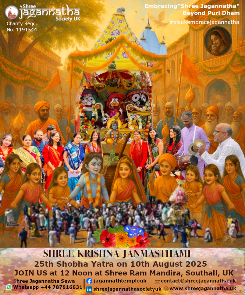Join us on 10th Aug, 2025 at Shree Ram Mandir in Southall to celebrate Shree Krishna Janmastami & the annual Shobha Yatra! SJS UK is proud to participate in the Shobha Yatra this year, as well. #shreejagannathasocietyuk #sjsukembracejagannatha #LordJagannath #lordjagannathlondon https://t.co/ufnw5thJPW (tw)
