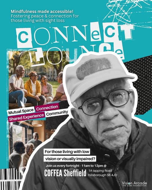 Loneliness should never be part of the journey for those living with sight loss. At Connect Lounge, we create a safe space filled with laughter, mindfulness, and shared experiences. Every Fortnight at COFFEA Sheffield, people with low vision and visual impairment come together to connect, share, and belong. ✨ Mutual space ✨Community ✨Connection ✨Shared experiences Join us, and let’s build brighter, stronger communities where no one feels left behind. #VisionArcade #ConnectLounge #SightLossSupport #CommunityMatters #LowVisionCare #SheffieldEvents #EyeCareFoundation (fb)