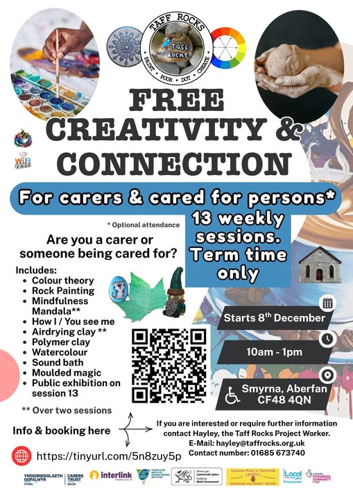 🌟 🎨 FREE Creativity & Connection for Carers! 🎨 🌟 Take a break, unwind & create — come solo or bring the person you care for 💕 ✨ What’s included: 🖌 Mandalas & journaling 👐 Clay & 3D painting (frogs, owls, snails & more!) 🎨 Watercolours & acrylics 🔔 Relaxing sound bath 🎉 Week 13: Public art exhibition + buffet! ✅ FREE to attend – all materials provided 💺 Spaces are limited – book now: https://creativity-and-connection.eventbrite.co.uk We can’t wait to see you and share some creative fun! 🌈✨ (fb)