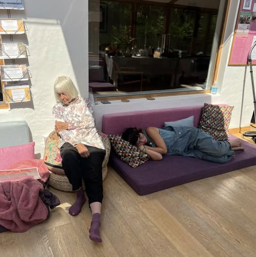 💜 I walked into the conservatory and instantly my heart melted. Over Jill’s last few visits, it has been incredible and heart-warming to watch her bond with Gina deepen and grow. I just had to capture this beautiful moment of them fast asleep side-by-side. So at ease, so peaceful, so at home in each other’s presence. Truly Yoga family. ✨ In the spirit of Advaita, moments like these remind us that in love and friendship there is no separation — only the simple joy of being together, resting as one. 🌿 … … … #yogapractice #accessibleyoga #inclusiveyoga #yogaforeveryone #ashram #yogi #spiritualjourney #meditation #yoga #spiritual #awareness #spirituality #consciousness #awakening #mandalayogaashram #yogaretreat #ashramuk #yogatreatwales #retreat #yogaashramuk #yogaretreatuk #yogaretreatwales #swaminishchalananda #ashramwales #AdvaitaYoga #advaita #yogacourse #volunteering #volunteerwithus (fb)