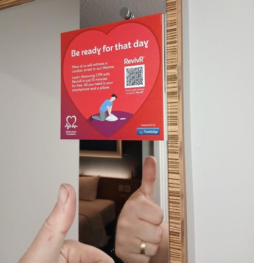 This month British Heart Foundation campaign to get more people CPR aware and trained. James was away overnight in a travel lodge recently and found these stickers on the mirrors! 👍 A great reminder to all who visit the importance of CPR! Anyone can save a life! Do you know how to perform CPR? If the answer is no then this is the month to set a goal to learn how before October ends! 🫀 #Restartaheart #cardiacawareness #britishheartfoundation #CPR #lifesavingskills #learn #goals #lifesaver #beprepared Let's be a nation of lifesavers! ❤️ (fb)