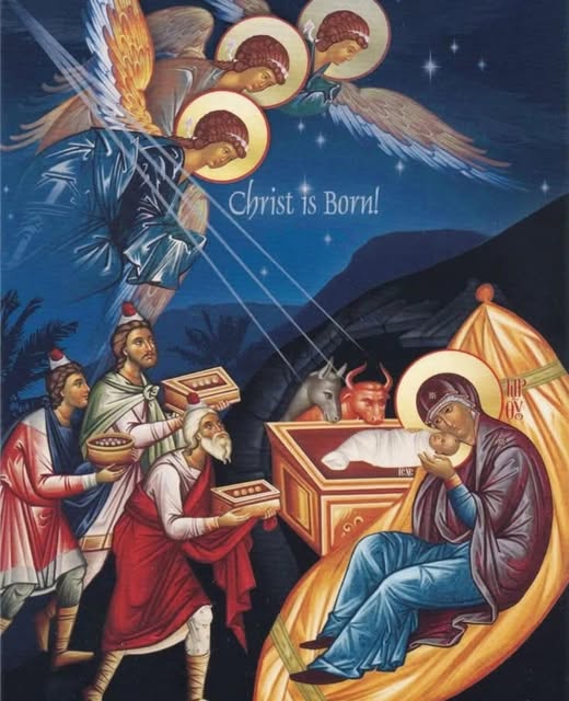 Christ is born Glorify Him! “Behold a new and wondrous mystery. My ears resound to the Shepherd’s song, piping no soft melody, but chanting full forth a heavenly hymn. The Angels sing. The Archangels blend their voice in harmony. The Cherubim hymn their joyful praise. The Seraphim exalt his glory. All join to praise this holy feast, beholding the Godhead here on earth, and man in heaven. He who is above, now for our redemption dwells here below; and he that was lowly is by divine mercy raised." St John Chrysostom (fb)