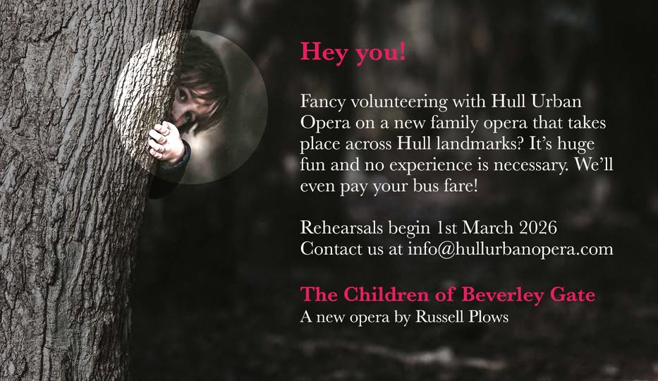 There are 20 places available for volunteer performers to work with us on R&D of a spooky new opera set in Hull! Rehearsals begin 1st March - just drop us a line for more info at info@hullurbanopera.com (fb)