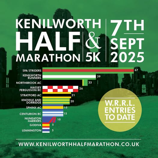 W.R.R.L. Entries to date for our 25th half in 2025 see Spa Striders Running Club streaking ahead with Kenilworth Runners and Northbrook AC making up the current top three clubs in terms of entries. The Kenilworth Half is part of the Warwickshire Road Running League (W.R.R.L.), a series of races in Warwickshire hosted by local clubs, designed by Runners for Runners - open to everyone to take part in. The 6th race in the league is waiting for you! Sign up now. http://www.kenilworthhalfmarathon.co.uk/ #fasterme #kenilworthrunners #trackandfield #roadrunner #roadrunning #warwickshireathletics #warwickshireroadrunning #warwickshireroadraceleague #trailrunner #trailrunning #running #5k #10k #halfmarathon #kenilworthhalf #firsthalfmarathon #firsthalfmarathontraining #marathon #londonmarathon #londonmarathontraining #ultrarunning (fb)