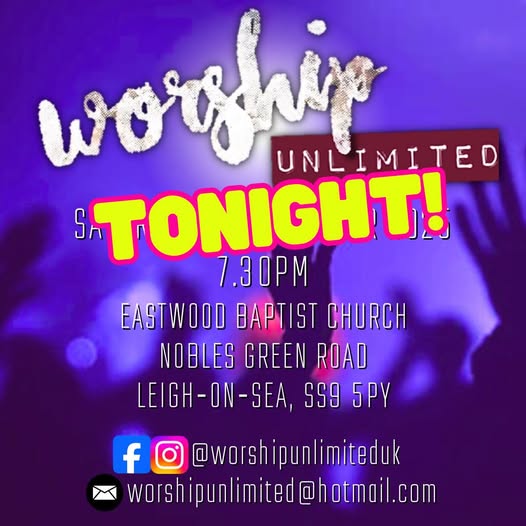 📣TONIGHT @ 7.30pm🙌 Worship Unlimited - 11th October 2025 Come on down to Eastwood Baptist Church and worship King Jesus with us tonight. If you need a touch from the King, come and join us as we lay everything at His feet and dwell in His precious presence. 🔥 Come, Holy Spirit, Come #WorshipUnlimited (fb)