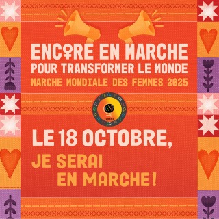 Le 18 octobre, nous serons à l'action de la Marche mondiale des femmes à Québec! Passons le mot! Affichez-vous aussi en changeant votre photo de profil pour celle-ci. #Encoreenmarche #MMF2025 #Marchemondialedesfemmes (fb)