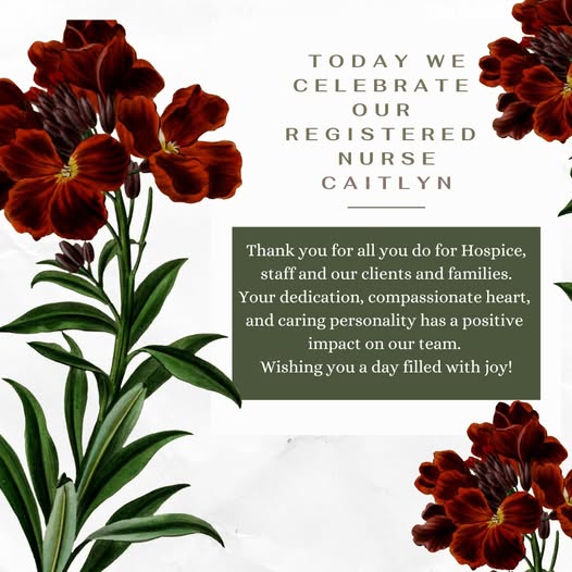 Today we celebrate our Registered Nurse, Caitlyn! Thank you for being an integral member of the team! Wishing you a day filled with joy! (fb)