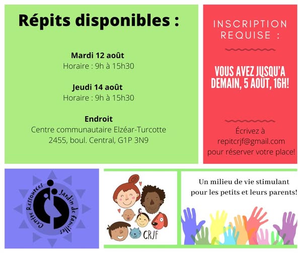 Pour les Répits de la semaine prochaine, vous pouvez manifester votre intérêt à Naomi d'ici demain en fin de journée! (fb)