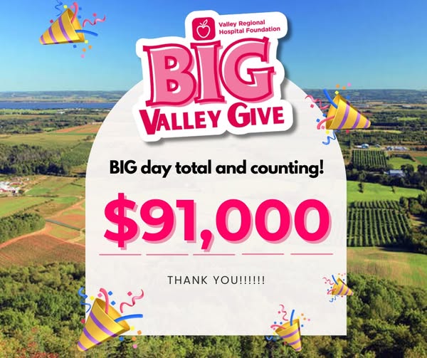 VALLEY, YOU DID IT! 🎉❤️ One day. One Valley. ONE BIG DIFFERENCE! Yesterday, our incredible community came together for the #BIGValleyGive—and thanks to you, we raised over $91,000 (and counting!) to support every area of Valley Regional Hospital. Whether you gave a twoonie, a twenty, or thousands, your generosity matters. Because of you, we’re one step closer to: ⚡ Enhanced care for our loved ones 🩺 State-of-the-art equipment for our frontline heroes 💖 More life-changing and life-saving stories The need for exceptional healthcare never stops—and neither can we. If you missed yesterday’s giving frenzy, you can still make a difference! Donate today at https://heyor.ca/xuyNhC to help us reach even higher. ❤️ To our donors, partners, and champions—thank you. This is the power of community. #BIGValleyGive #ValleyStrong (fb)
