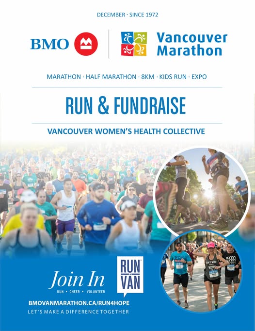 💪 Run for a Cause at the BMO Vancouver Marathon! 💙 This year, join the Vancouver Women’s Health Collective in creating real change: 🏃♀ Run for VWHC: Lace up and represent a community that empowers lives. 🤝 Fundraise: Inspire your friends and family to support your marathon journey. 💙 Donate: Not running? Your contribution fuels hope and wellness for those in need. https://womenshealthcollective.ca/ Every step, every dollar, makes a difference. Together, we can provide life-changing counseling and wellness services for individuals in our community. Let’s cross the finish line stronger and make 2025 brighter for everyone! RUNVAN® - Vancouver Runners 👉 Register or Donate Now: https://runvan.org/ #BMOmarathon #RunForChange #VWHCImpact #StrongerTogether #FinishStrong (fb)