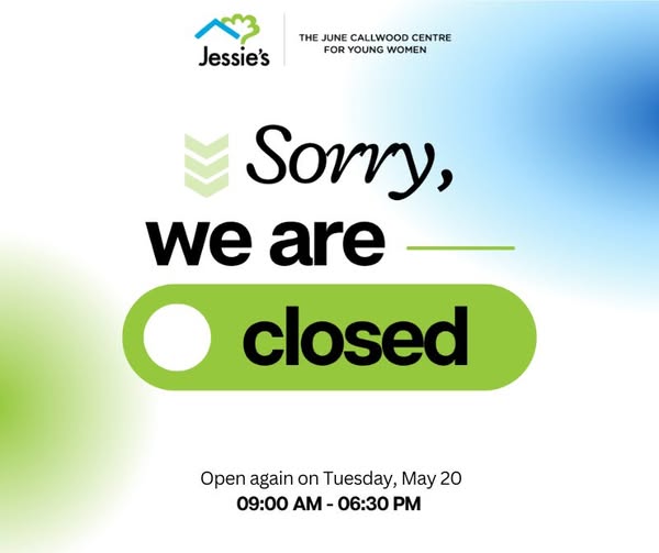 Please note that we are closed for the long weekend. We hope you enjoy a restful and joyful holiday. We’ll be back and ready to serve you on Tuesday, May 20 at 9:00 AM! 💚 #VictoriaDay #ClosedNotice #JessesCentre #SeeYouTuesday #CommunityCare (fb)