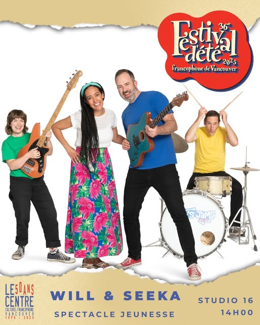 🎶👧🏽 Spectacle jeunesse à ne pas manquer ! 👦🏻🎶 🎤 Will & Seeka sont des musiciens et éducateurs reconnus à l’échelle nationale, partageant tous deux une passion pour la musique, les langues et l’éducation de la petite enfance. ❤️ Will & Seeka - 14h00 📅 Dimanche 15 juin 📍 Studio 16 - 1551, West 7th Avenue Pour les enfants de 1 à 8 ans! @willsjamsmusic @seekasings Merci à nos partenaires: @unistv, pour leur soutien d'années en années 🩵 @aircanada, le transporteur officiel du Festival d'été Fédération des parents francophones de Colombie-Britannique Canadian Parents for French - BC & Yukon @cpfnational Government of British Columbia @bqcto @radiocanada @cityofvancouver BC Arts Council @bcartscouncil @modo_carcoop ... *** 🎶👧🏽 A Must-See Kids’ Show! 👦🏻🎶 🎤 Will & Seeka are nationally recognized musicians and educators, both sharing a passion for music, languages, and early childhood education. ❤️ Will & Seeka - 2:00 PM 📅 Sunday, June 15 📍 Studio 16 — 1551 West 7th Avenue For children ages 1 to 8! @willsjamsmusic @seekasings Big thanks to our amazing partners: @unistv, for their continued support over the years 🩵 @aircanada, the official carrier of the Festival d’été Fédération des parents francophones de Colombie-Britannique Canadian Parents for French - BC & Yukon @cpfnational Government of British Columbia @bqcto @radiocanada @cityofvancouver BC Arts Council @bcartscouncil @modo_carcoop ... (fb)