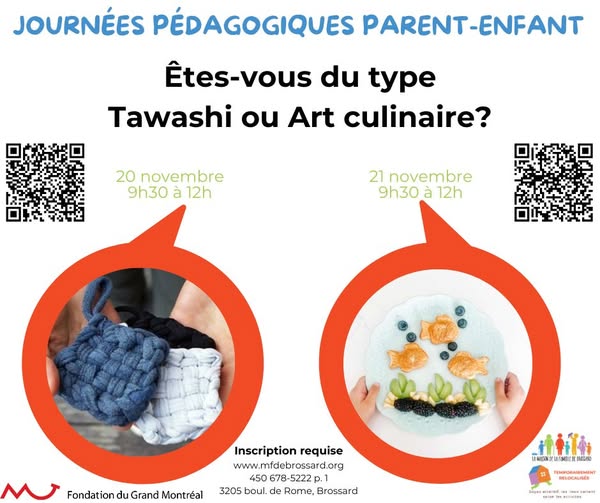 Je suis tellement ravie de voir ces événements pour les parents et les enfants ! C'est essentiel de créer des liens dans une ambiance chaleureuse et bienveillante. Bravo à l'équipe de La Maison de la famille de Brossard ! 👏😊detail |