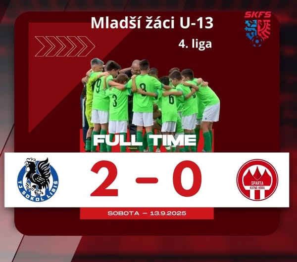 👉 mladší žáci 👈 Fantastický výkon všech hráčů, od gólmana po posledního útočníka. V dnešním zápase porážíme dosavadního lídra tabulky Spartu Kutná Hora 2:0 (0:0) 👍. Krátké hodnocení - https://www.sokollibis.cz/libis-kutna-hora/ Gratulujeme 💙🤍💙. (fb)