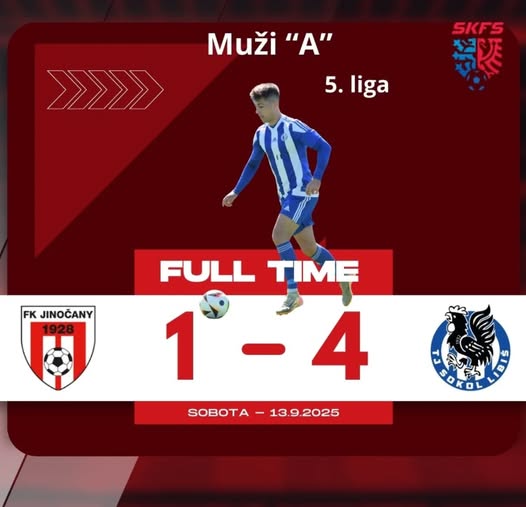 👉 🅰️-mužstvo 👈 Z Jinočan vezeme tři body po výsledku 1:4 (0:3) 👍. O naše branky se postarali: ⚽⚽ Moravec, ⚽ Přibyl, ⚽ Kasal. 💙🤍💙 (fb)