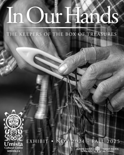 “I met Stella in grease camp [where we catch eulachon fish to make fish oil]. Stella was there with her grandparents. The old lady and the old man taught us how to do build the nets. They taught us in our language [Kwak̕wala] but if we stepped over the lines, they would bawl us out in English. You know how it is. You're taught to do it one way. Then you go do it your own way. [laughter]” Detail: Stevie Beans Gig̱a̱me' Kwa̱nxwalas ʼNa̱mǥis • Mama̱liliḵa̱la Stevie & Stella’s portrait in “In Our Hands: The Keepers of the Box of Treasures” speaks to learning, laughter, and the blending of tradition with lived experience. Their story, like so many in this exhibit, reminds us that teachings live not only in books or ceremony — but in the everyday moments and memories we carry. Exhibit: In Our Hands: The Keepers of the Box of Treasures 📍 U’mista Cultural Centre 🗓 On now through Fall 2025 U’mista Cultural Centre #1 Front Street, Alert Bay, BC Open Mon-Fri 9-5:00 For Centre hours and admission rates: https://www.umista.ca/pages/contact G̱ilakas’la Canada Council for the Arts for their support of this project. . . . #InOurHands #BoxOfTreasures #GreaseCampStories #Kwakwa̱ka̱wakwCulture #Umista (fb)