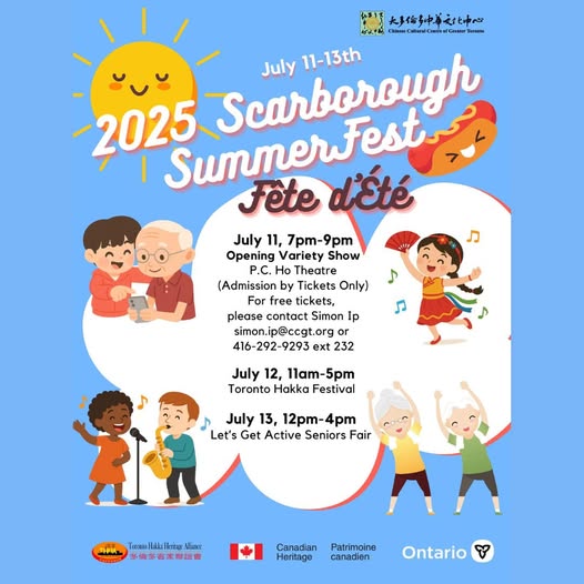 Celebrate the Scarborough Summer Fest with the Chinese Cultural Center of Greater Toronto, on July 11, 2025, at 7:00 to 9:00 p.m. For free tickets, contact Simon IP at simon.ip@ccgt.org or 416-292-9293 ext 232 Learn more at https://ow.ly/qo0850W8HJI (fb)