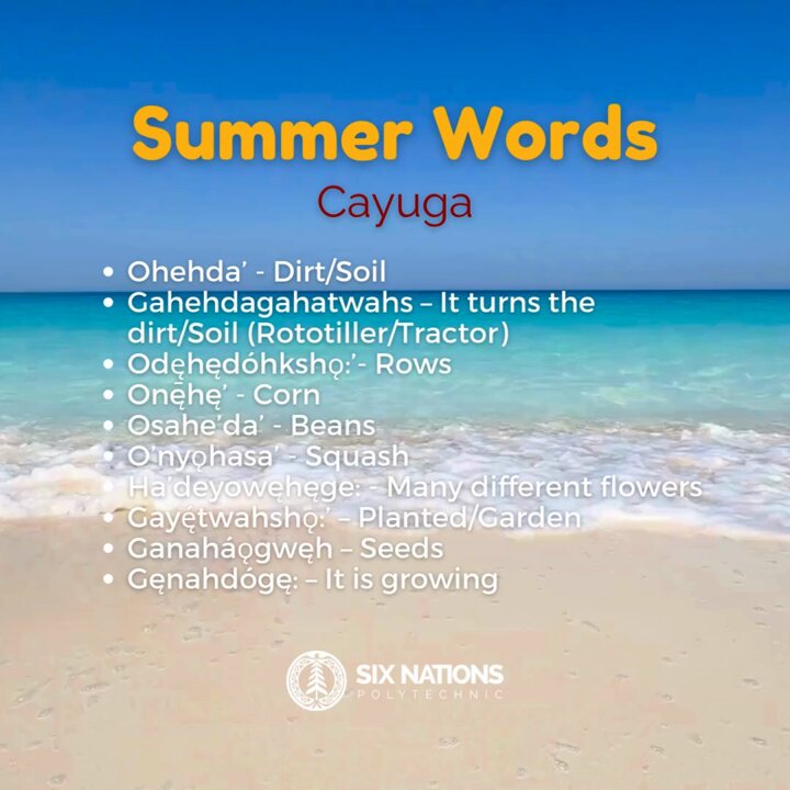 Can you believe it? We’ve reached the final week of summer! 🌱💐🌽🚜 Explore SNP's Summer Words in both Cayuga and Mohawk languages. What was the highlight of your summer? Share your favourite memories with us in the comments! ✨ https://t.co/Ur27OEw916 (tw)