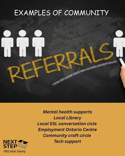 🌟📚 Did you know? At Next Step, we don’t just offer FREE one-to-one tutoring! We’re also part of a fantastic community agency network! 🤝✨ Need help beyond tutoring? We can connect you to services such as mental health support, tech assistance, even the local library for English conversation or craft circles! 🎨📖 We're here to support you in every way possible! 🚀💪 #nextstepliteracy #CommunitySupport #community #freetutoring #ittakesavillage #LiteracyON #literacymatters #tuesdaythoughts #newtecumseth #southsimcoe (fb)