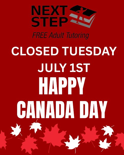 🎉🇨🇦 Heads up! We’re taking a little break on Tuesday, July 1st, to celebrate Canada Day! 🍁✨ We'll be back ready to serve you on July 2nd! Enjoy the festivities and keep the celebrations rolling! 🎈🥳 #canadaday #OhCanada #nextstepliteracy #literacymatters #newtecumsethontario (fb)