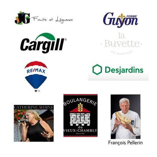 Un immense merci à nos précieux commanditaires ! Le Défi des chefs propulsé par Desjardins n'aurait pas été possible sans la générosité et l'engagement de nos incroyables partenaires. Merci du fond du cœur : Charles Vincent Raschella et Fékria Joad - Courtiers RE/MAX Louis-Olivier Provost et la Buvette du Quartier Les Aliments Cargill JG Rive-Sud fruits et légumes La Ferme Guyon La Boulangerie du Vieux-Chambly Catherine Avoine pour sa magnifique prestation au chant François Pellerin pour la confection de la boîte Votre soutien a fait toute la différence et a permis de faire de cet événement un véritable succès ! (fb)