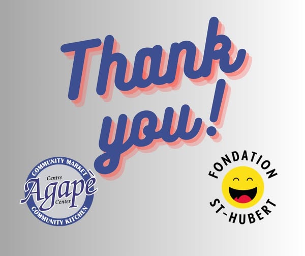The Agape Centre, would like to say, "Thank You" to Fondation St-Hubert for your continued support. We are grateful to be chosen by your Foundation and your belief in our mission. We love our community!❤ (fb)