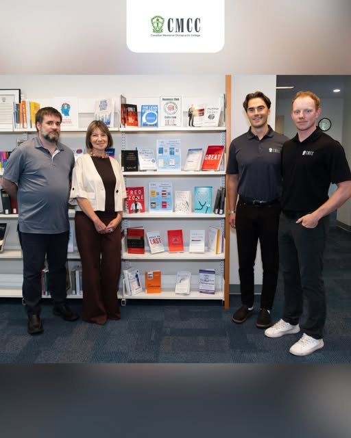 The CMCC Library, together with the CMCC Business Club, is proud to unveil a curated collection of books related to the business of chiropractic, entrepreneurship and personal development. Business Club presidents Courtney Johnston and Benjamin Perrett have spent the past year curating the collection with support from Library Director Dr. Nathalia Tukhareli and Reference Librarian Dr. Nathan Moles, building on the original idea from past president Isaac Bevis and with support from Dr. Peter Kim, faculty coordinator of the Business Club. A heartfelt thank you to everyone who contributed. This collection is designed to help students explore new ideas, develop their careers, and strengthen their business and entrepreneurship skills. (fb)