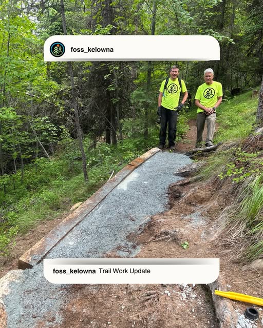 🌟 Trail Work Tuesday: Captain Nemo Edition – Part 2! 🌟 This section of Captain Nemo was giving serious “don’t slip here” vibes, perched on the downslope side of a large tree, with erosion carving away the trail and only exposed roots left to navigate. Not exactly what you want mid-climb! Thanks to some solid teamwork, a tie wall was installed, packed with fresh material, and compacted to perfection. The result? A much safer, smoother climb from the bottom of the park to the KVR, no root rodeos required. Got a favourite trail fix we’ve done? Drop it in the comments; or better yet, sign up to volunteer with us and make the magic happen! ✨ #TrailGlowUp #CaptainNemoFix #FOSSKelowna #MyraBellevue #TrailWorkHeroes #ErosionBeGone #myrabellevueprovincialpark (fb)