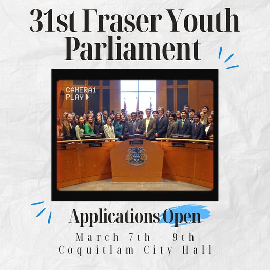 The World Tour continues on to Fraser Youth Parliament (FYP)! FYP will be taking place March 7th - 9th at Coquitlam City Hall. General applications are due February 28th. Interested in a leadership position?Cabinet applications are due February 7th, and can be found in the link in our bio. #BCYP #BCYP95 #hYPe #youthempowerment #humansofyp #bcpoli #youthservice (fb)