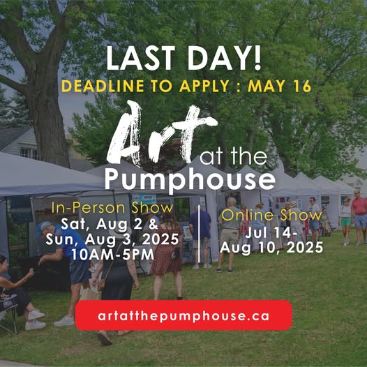 Deadline to submit your application is midnight tonight⌚Don’t miss your chance to be part of Art at the Pumphouse, happening August 2 & 3, 2025 at the Niagara Pumphouse Arts Centre! Apply now to showcase your work in this premier summer art event—indoors, outdoors, or online. 🖼️ Online show runs July 14–Aug 10 ⚠️ Submission deadline: May 16, 2025 – Apply Today! 📍 Details & application: https://niagarapumphouse.ca/events/art-at-the-pumphouse #CallForArtists #NiagaraArt #ArtAtThePumphouse #NOTLevents #ArtistOpportunity #NOTL #NiagaraontheLake (fb)