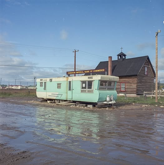 Have you ever made financial transactions in a robin’s egg blue coloured trailer located on a muddy, unpaved road? Talk about a unique banking experience! PAA: RS1683 Fort McMurray – Canadian Imperial Bank of Commerce Oct 1964 (fb)