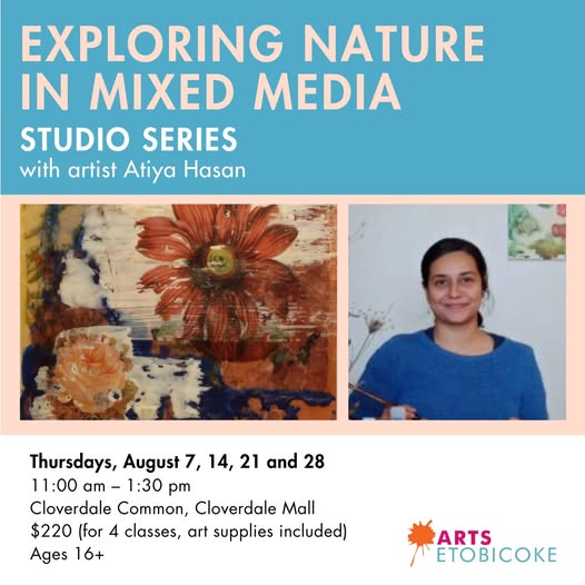 🌿🎨 Discover the beauty of nature through the lens of mixed media! In this hands-on course, you’ll explore textures, patterns, and colours found in the natural world using watercolours, inks, pens, gouache, charcoal, and more. Layer, experiment, and create artworks that reflect the intricate beauty of your surroundings. Perfect for curious creatives ready to dive into new techniques! Register here - https://www.artsetobicoke.com/events/studio-series-at-cloverdale-mall/ #MixedMediaArt #NatureInspiredArt #ArtWorkshops #CreativeProcess #ArtsEtobicoke #ExploreCreateConnect (fb)