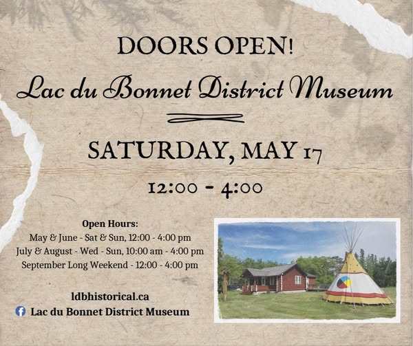 Due to the devastating wildfires surrounding the Lac du Bonnet area, the Lac du Bonnet District Museum will be postponing our opening weekend until further notice. We’d like to extend our utmost gratitude to those who have been fighting the fires, and our hearts are with those who have been affected. (fb)