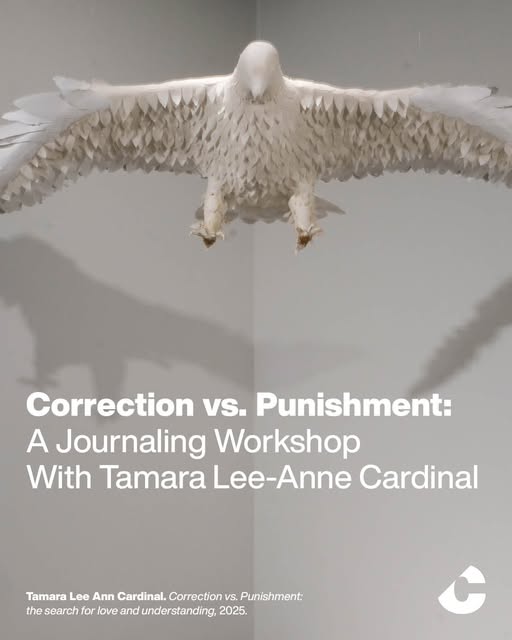 Correction vs. Punishment: A Journaling Workshop With Tamara Lee-Anne Cardinal September 28 | Workshop | 2-4 PM | Participation fee: $10 Click here to get your tickets 🔗 https://bit.ly/4myaEeQ Please join us for a journaling workshop that departs from – and draws on – Correction vs. Punishment (2025), a work by artist Tamara Lee-Anne Cardinal that is currently on view as part of the exhibition Presence. Correction vs. Punishment, a life-sized sculpture of an eagle that is made up of handmade paper, centers on the teachings that say there are two sides to every eagle feather. The mistakes that we make lie on one side, while the potential for correction or amends lies on the other. This workshop, led by Cardinal, invites participants to reflect on both sides of the eagle feather, using paper made by the artist to journal, practice self-reflection, but also self-compassion. Participants are encouraged to bring a piece of writing – be it poetry, prose, an essay, or a song – that speaks to them, and to potentially integrate into the workshop. Kindly note that this workshop has limited capacity. If you register and are unable to attend, please let us know as soon as you can. If the workshop is full and you’d like to join the waiting list, please send an email to muriel@contemporarycalgary.com #ContemporaryCalgary #JournalingWorkshop #TamaraLeeAnneCardinal #ThingsToDoYYC #YYCEvents (fb)