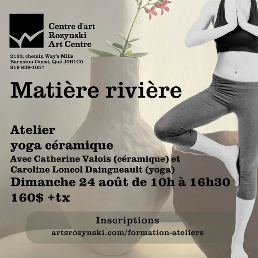 🧘♀️🌿 Matière rivière — Atelier bien-être & création au Centre d’art Rozynski Plongez dans l’esprit de l’école de poterie Rozynska des années 60-70, où les apprentissages s’accompagnaient de détente et de yoga en jardin. Dans cette journée tout en douceur, nous unissons le corps, le souffle et la terre. L’atelier "Matière rivière" marie les pratiques du yoga et de la céramique dans un moment de pleine conscience, au cœur de la nature. ✨ Au programme : • Respiration, méditation et étirements doux • Création d’un vase ou d’un pot à plantes en colombinage • Connexion à soi à travers le geste et la matière • Immersion dans notre magnifique environnement boisé, au bord de la rivière Un espace pour ralentir, s’ancrer et créer. 🌊👐 📍 Réservez votre place au Centre d’art Rozynski — un rendez-vous pour le corps et l’esprit ! #atelierceramique #yogaetcreation #matièrerivière #bienêtre #créativité #centrerozynski #yogart #retreatinnature #atelierartistique #santémentale #expérienceholistique #colombinage #potterie #artetnature #slowart --- 🧘♀️🌿 Rivière matière — A Wellness & Creative Workshop at the Rozynski Art Centre Step back into the spirit of the Rozynska Pottery School of the 1960s and 70s, where learning was intertwined with moments of relaxation—including yoga sessions in the garden. This gentle day-long workshop brings together body, breath, and clay. "Matière rivière" blends the practices of yoga and ceramics in a mindful experience rooted in nature. ✨ What’s included: • Breathing, meditation, and gentle stretching • Creating a vase or plant pot using the coil-building technique • Mindful gestures and self-connection through touch and rhythm • Immersion in our peaceful woodland and riverside setting A space to slow down, ground yourself, and create. 🌊👐 📍 Book your spot at the Rozynski Art Centre — a moment for body and spirit! #ceramicworkshop #yogaandart #rivermatter #wellnessday #creativeescape #rozynskiartcentre #yogart #mindfulretreat #artandnature #mentalwellness #holisticexperience #potteryretreat #coiltechnique #slowart (fb)
