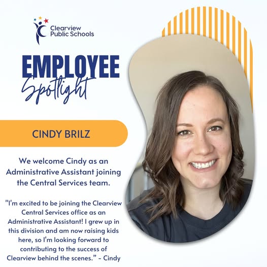 🎉 Employee Spotlight: Welcome, Cindy Brilz! 👋 We’re thrilled to welcome Cindy Brilz as our newest Administrative Assistant at Clearview’s Central Services office! Cindy brings a special connection to our division. She grew up in Clearview and is now raising her own kids here. Her passion for supporting education from behind the scenes makes her an incredible addition to our team. Help us give Cindy a warm welcome! 💙 (fb)