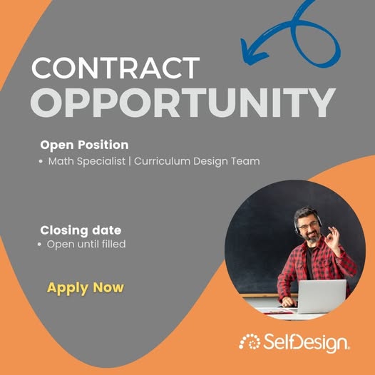 SelfDesign Learning Foundation is seeking an experienced, K–12 educator with a strong background in numeracy and math curriculum and online learning to join our Curriculum Design Team. In this part-time role, you’ll support the SelfDesign Learning Community (SDLC) Educational Program team in shaping creative, learner-centred experiences in a fully online environment. This is a one-year 0.5 FTE contract running from August 2025 to July 2026. You'll work collaboratively within a team to support and enhance numeracy curriculum for learners, with focus on Grades 8–12 (especially Grades 10–12). We are looking for someone who: ✅ Is enthusiastic about curriculum development and online learning ✅ Demonstrates initiative and brings creative, learner-first thinking ✅ Is curious, reflective, and open to innovative approaches ✅ Ideally has experience working in D2L Brightspace. We are a remote organization. We typically operate during Pacific Time zone business hours. You set your own hours of work, between the business hours noted above. You also need to be available for occasional online meetings during these same hours. Meetings are scheduled in advance. Learn more and apply here → https://www.selfdesign.org/about-us/opportunities/ (fb)