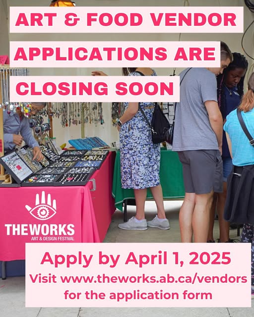 Art and Food vendor applications for The Works Art & Design Festival’s 40th anniversary closes soon! Want to be apart of this unique event in the downtown core to showcase your business and products? Make sure to head to our website at www.theworks.ab.ca/vendors to download the application form and submit by April 1st, 2025. (fb)