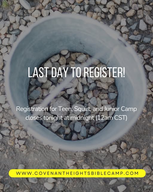 Get signed up today! Teen Camp - 1 spot left! Junior Camp - room for a few more! Squirt Camp - plenty of room for a few more! Family Camp - a little room but cabins are almost full. www.covenantheightsbiblecamp.com (fb)