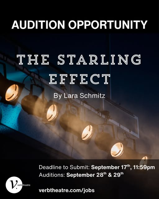🚨Audition Alert!🚨 Verb Theatre is accepting audition submissions for next seasons world premiere production of The Starling Effect by Lara Schmitz. Full audition posting including how to submit via our bio, or the link below. Verbtheatre.com/jobs (fb)