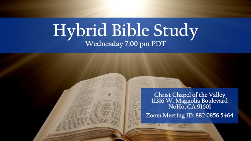We invite you to join us tonight at 7:00 pm PDT, either in person or via zoom, for an in depth study of the Book of 2 Samuel. Zoom ID# 882 0856 5464 (fb)