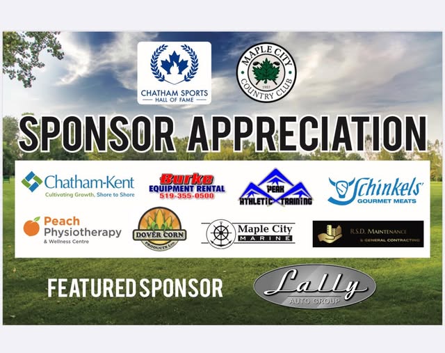 A huge thank you to all our sponsors at the Drive, Chip, Putt event! #chathamsportshalloffame #chathamkent #maplecitycountryclub (fb)